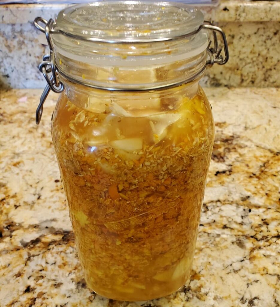 Fire Cider has been a fall tradition around the world for years. A spicy concoction that helps boost the immune system and chase away a cold or flu. I make Fire Cider every fall to make sure I have it on hand when one comes home and sits down and you say to yourself; “I’m tired I feel like I am coming down with something.” As soon as you mutter those words, its time to break out the Fire Cider and have a drink of this magic elixir.